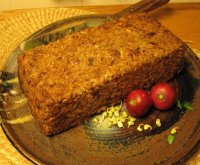 A tasty loaf of beans and onions, made hearty with nuts and oats and light with tofu.