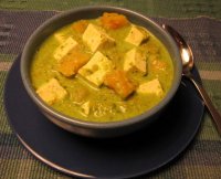This flavorful soup was served at a retreat at Great Vow Monastery. You'll love the color ---it's an unusual bright green, and when you stir in the cubes of orange squash, the effect is quite beautiful!
