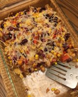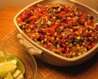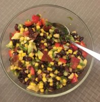 A tasty autumn dish with a long history: corn, beans and squash are the "three sisters" planted together in Native American tradition. The beans climbed up the tall corn stalks while the broad squash leaves shaded the soil. Linda brought this tasty version to our Fall potluck.
