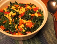 Imagine onions, mushrooms and spinach between layers of corn tortillas and Daiya cheese, topped with a creamy roasted corn sauce. Justina says, "As usual, the main trick is using fresh corn tortillas."