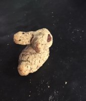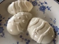 What an imagination! Christel came up with these special Easter treats: "eggs" made from cashew cream, served on a bed of steamed veggies, and a bunny (and other cookies) made from chickpea dough.