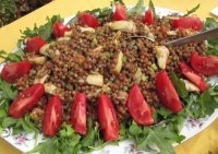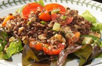 I love this recipe since it's so easy and quick and colorful. Remember all ingredients are approximate and can be adjusted for taste. Add more hot pepper flakes or hot sauce if you want "heat".----Betsy Shipley