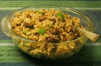 This is one of our favorite easy suppers. I picked up the recipe at a restaurant in Victoria, B.C., and tweaked it a little. If you are new to seitan, it's made from wheat, magically transformed into tender, tasty morsels. Look for it in the cooler section. At New Seasons it comes in a blue box, made by White Wave.