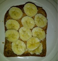 A typical breakfast from Jana's kitchen----toast with peanut butter and banana. Yum!