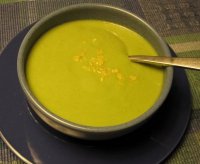 This soup is a favorite of mine. One of its virtues is that it can be made at the last minute. Another is its cheerful shade of green The brightness of the color will vary depending on the stock you use.