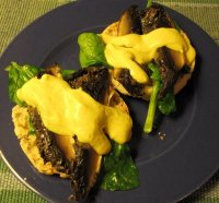 If you love Portabellas and crave something unique and wonderful for breakfast, brunch, or dinner, this is a recipe that you will definitely want to try! This is definitely elegant enough for company, or to impress your friends at a potluck. There are several steps to it, but none of them are complicated. Please note that we substituted the Hollandaise sauce from the Tofu Benedict recipe, as we preferred it over the Hollandaise sauce that was with this original recipe. Should you have any leftover (rare at our house!) try it on green veggies.