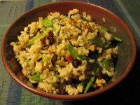 A flavorful salad combining two kinds of rice with the crunchiness of walnuts and snow peas and the tang of orange and mustard.