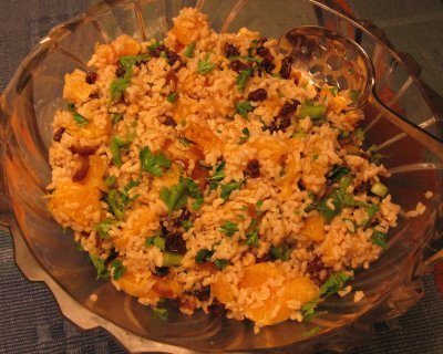 A rice salad with sweetness and tang from dates, oranges and scallions.