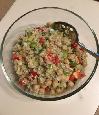 A light, refreshing salad made hearty with chickpeas and quinoa.