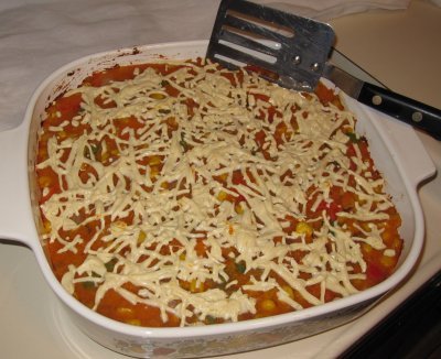 a handful or two of shredded vegan cheese (Daiya mozzarella is good)