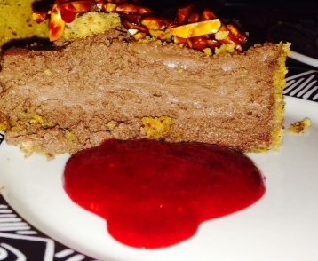 Chocolate Midnight with the pralines and raspberry sauce