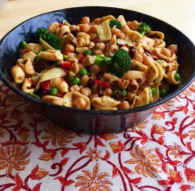 Too bad I didn't have rice pasta on hand, because i'm making this for a NWVeg potluck--probably people would appreciate it if the salad were gluten free. Otherwise, it looks good!