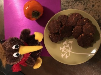 Add in the peanut butter, ground flax, water, vanilla, baking soda, and vinegar. Process until a sticky, uniform batter is created. Be careful not to over-process the mixture, as the peanut butter will release excess oil when over-mixed, and that will make the batter feel very oily to work with. (Don't worry if this happens, though-- the cookies still turn out totally fine!)