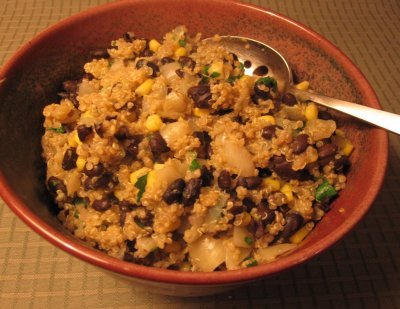 This easy one-pot dish combines a light and very nutritious grain, quinoa, with the heartiness of black beans.