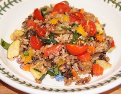 2-3 cups diced veggies: peppers (red, yellow, orange), green & yellow squash, carrot, celery