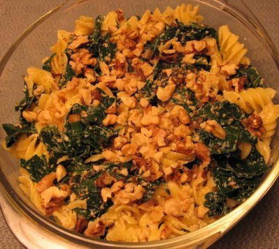 half of the walnut pesto, then stirred in the kale, seasoned the mixture again