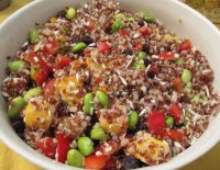 Linda says, "I made up this recipe earlier this year from the ingredient list on the 'California Quinoa Fresh Pack' from Whole Foods." It added color and goodness to our table at our summer potluck!