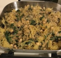 - Halve the peppers lengthwise, de-seed and de-vein them. Put them skin-down on an oiled baking sheet and roast at 400 till the skins begin to blacken a little. Cool and cut them up into little pieces and set aside. (If you decide to “decorate” your dish, cut some “rounds” from the fresh peppers before roasting and distribute these on top of the dish when you assemble it.)